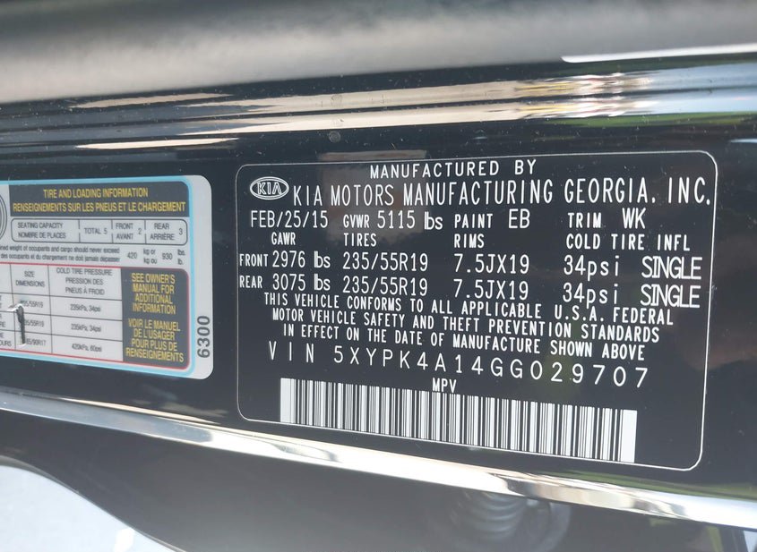 - VIN: 5XYPK4A14GG029707