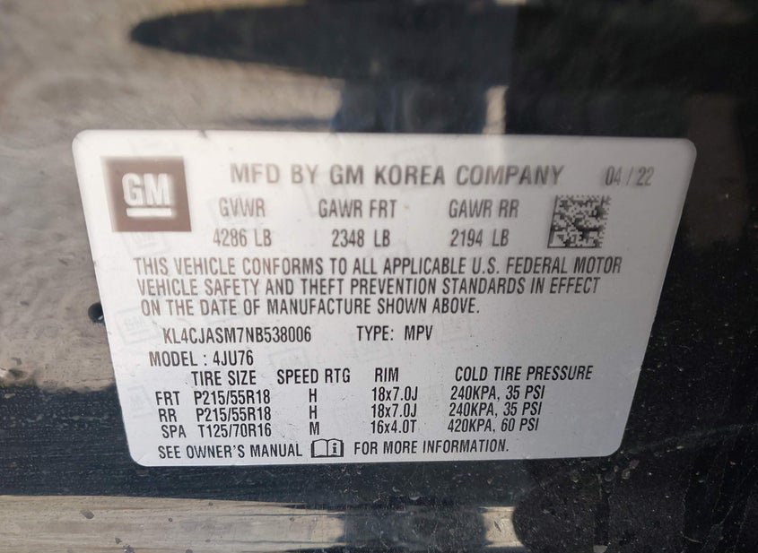 - VIN: KL4CJASM7NB538006