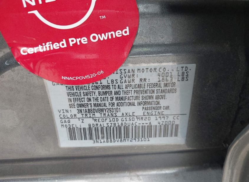 - VIN: 3N1AB8DV8MY293101