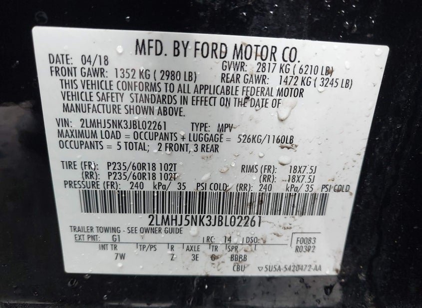 - VIN: 2LMHJ5NK3JBL02261