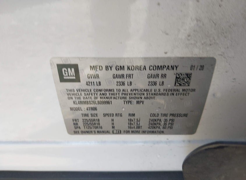 - VIN: KL4MMBS26LB099961