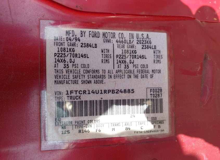 - VIN: 1FTCR14U1RPB24885