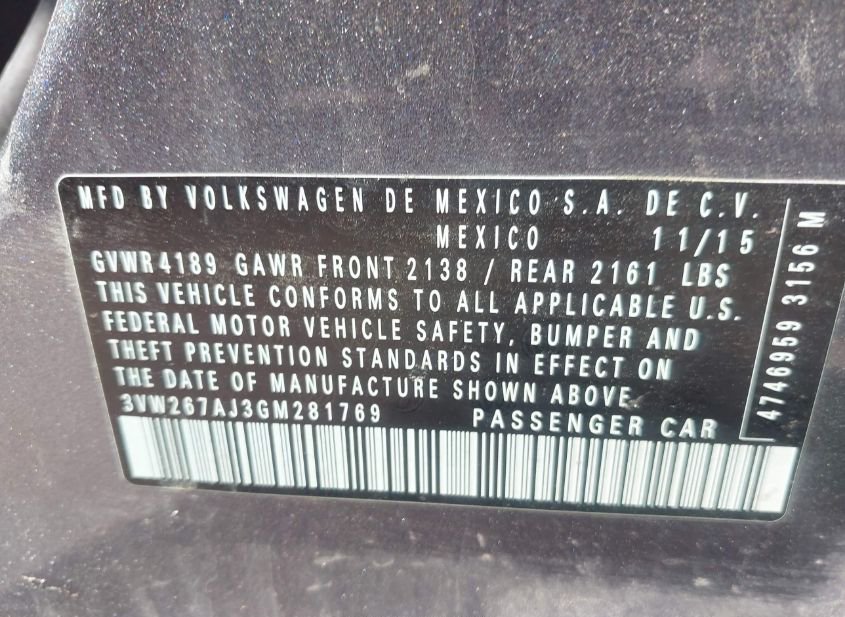 - VIN: 3VW267AJ3GM281769