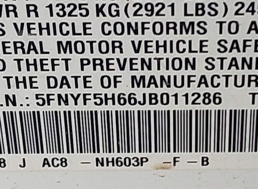 - VIN: 5FNYF5H66JB011286