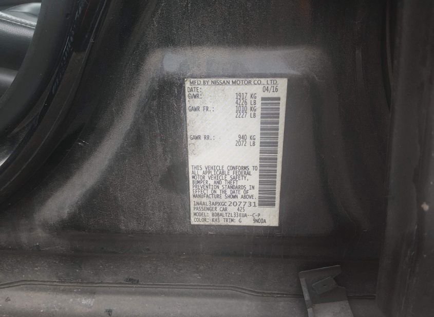 - VIN: 1N4AL3APXGC207731