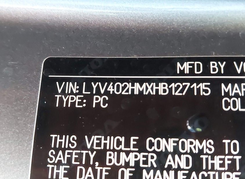 - VIN: LYV402HMXHB127115