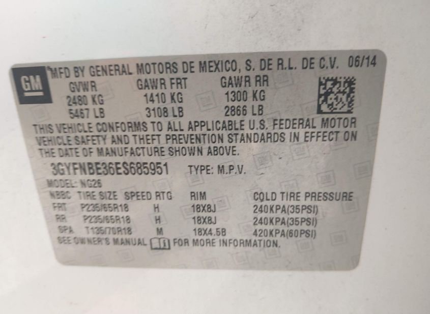 - VIN: 3GYFNBE36ES685951