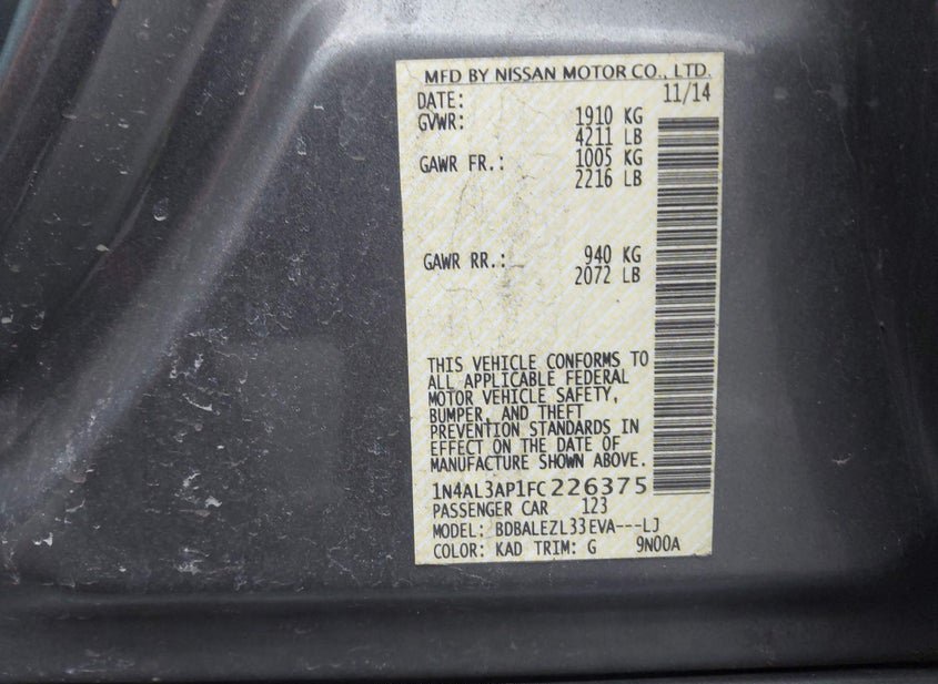 - VIN: 1N4AL3AP1FC226375