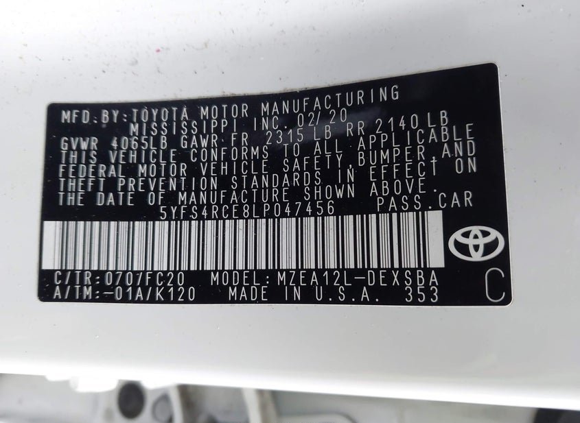 - VIN: 5YFS4RCE8LP047456