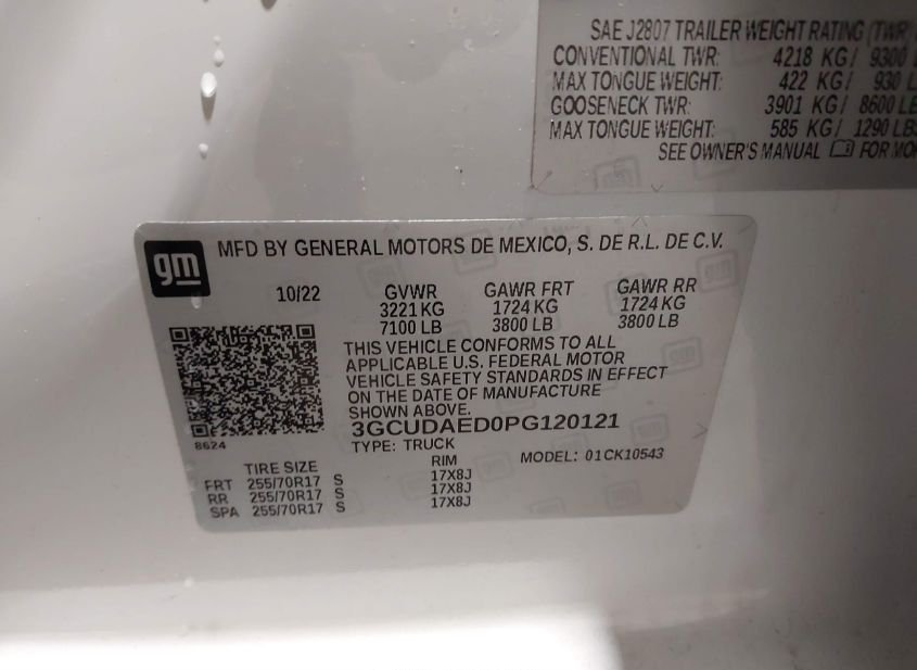 - VIN: 3GCUDAED0PG120121