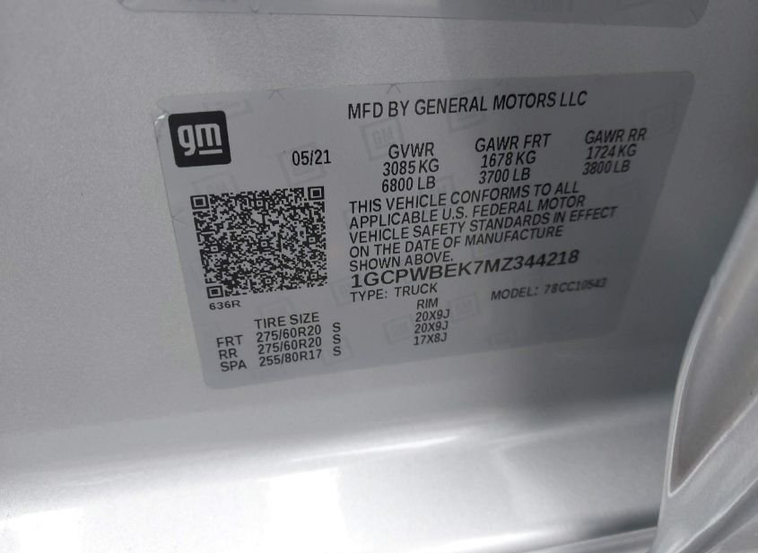 - VIN: 1GCPWBEK7MZ344218