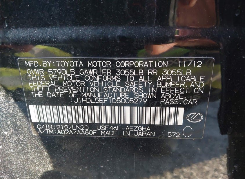 - VIN: JTHDL5EF1D5005279