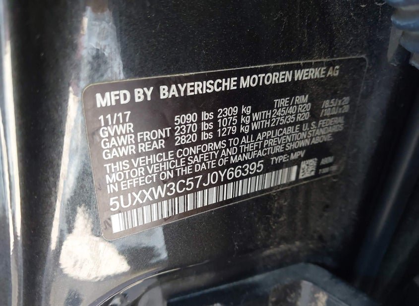 - VIN: 5UXXW3C57J0Y66395