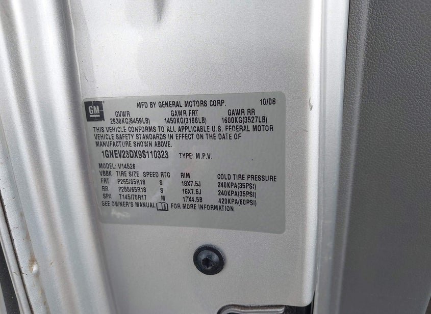 - Название лота: 2009 CHEVROLET TRAVERSE LT