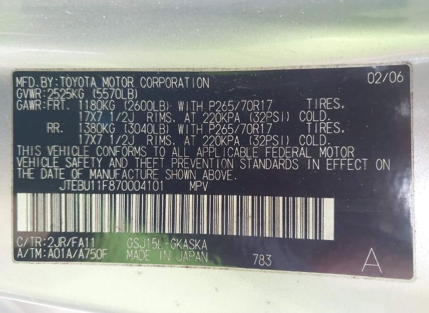 - VIN: JTEBU11F870004101