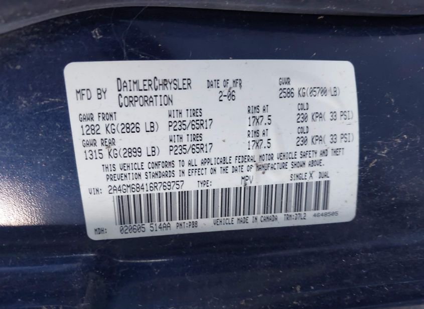 - VIN: 2A4GM68416R769757