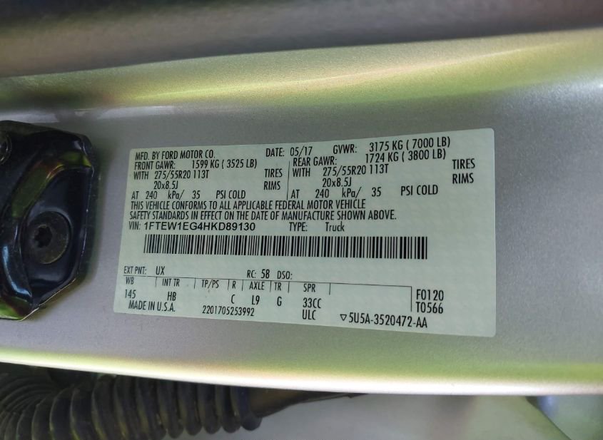- VIN: 1FTEW1EG4HKD89130