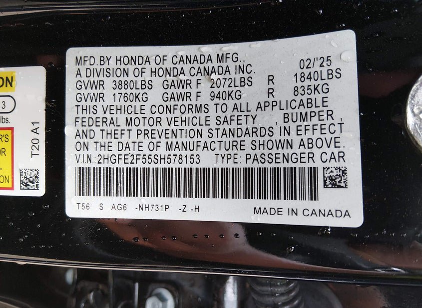 - VIN: 2HGFE2F55SH578153