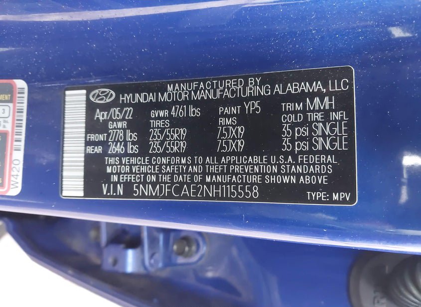 - VIN: 5NMJFCAE2NH115558