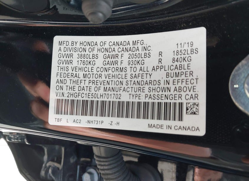 - VIN: 2HGFC1E50LH701702