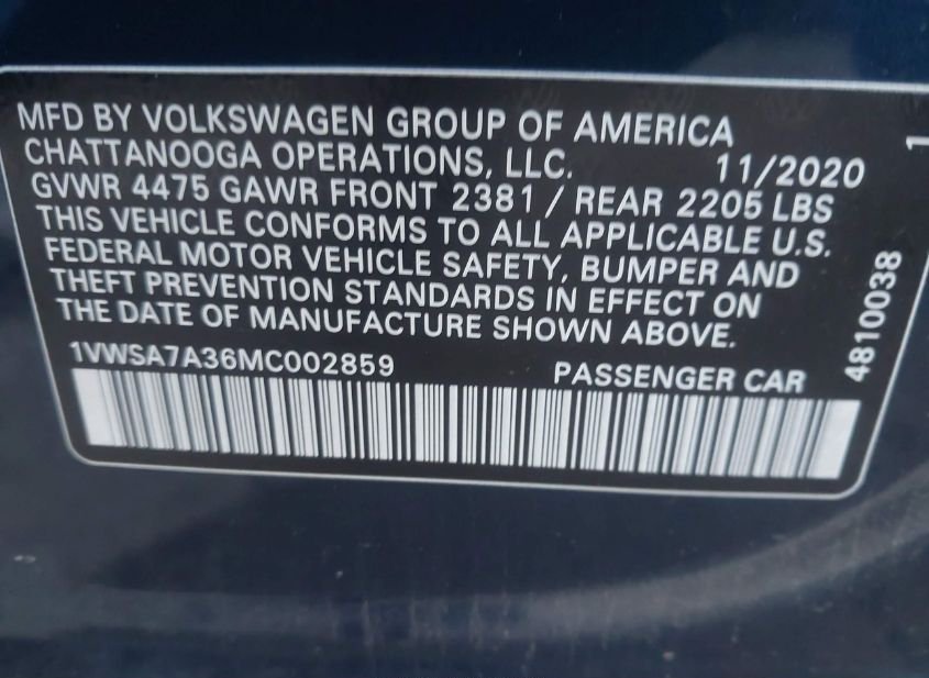 - Название лота: 2021 VOLKSWAGEN PASSAT 2.0T SE