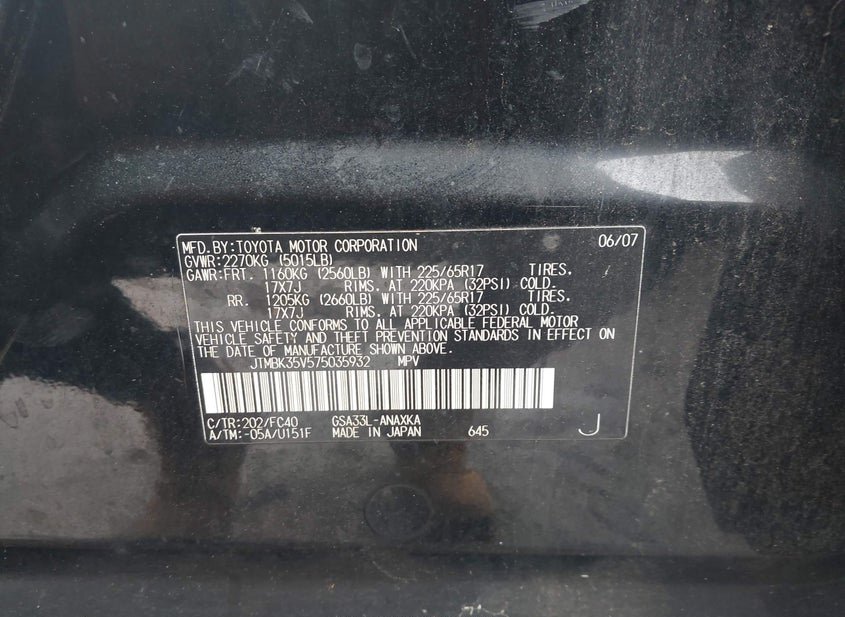 - VIN: JTMBK35V575035932