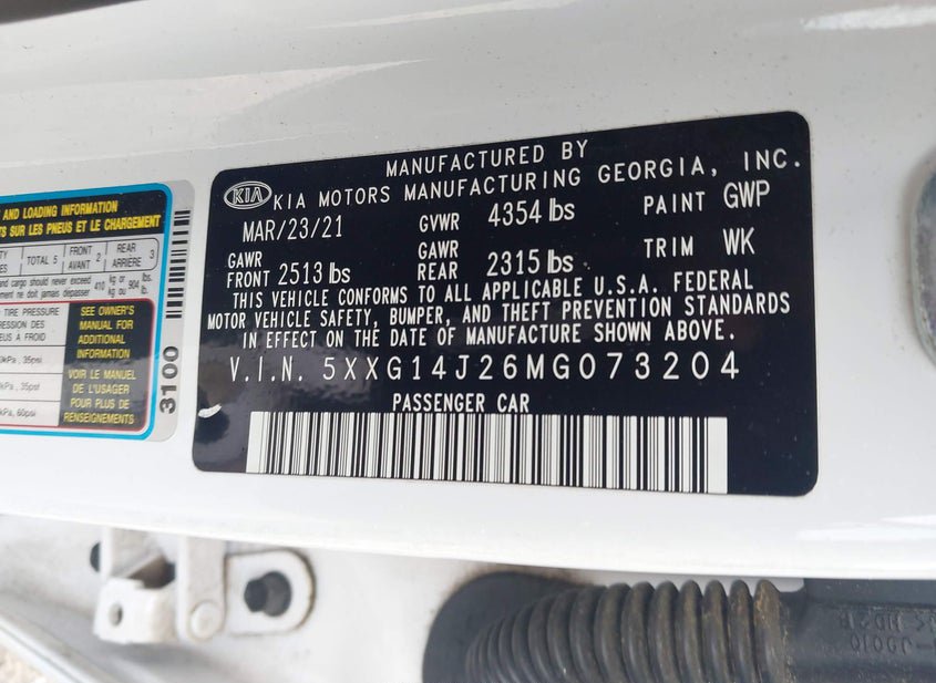 - VIN: 5XXG14J26MG073204
