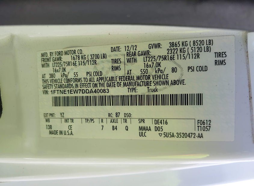- VIN: 1FTNE1EW7DDA40083