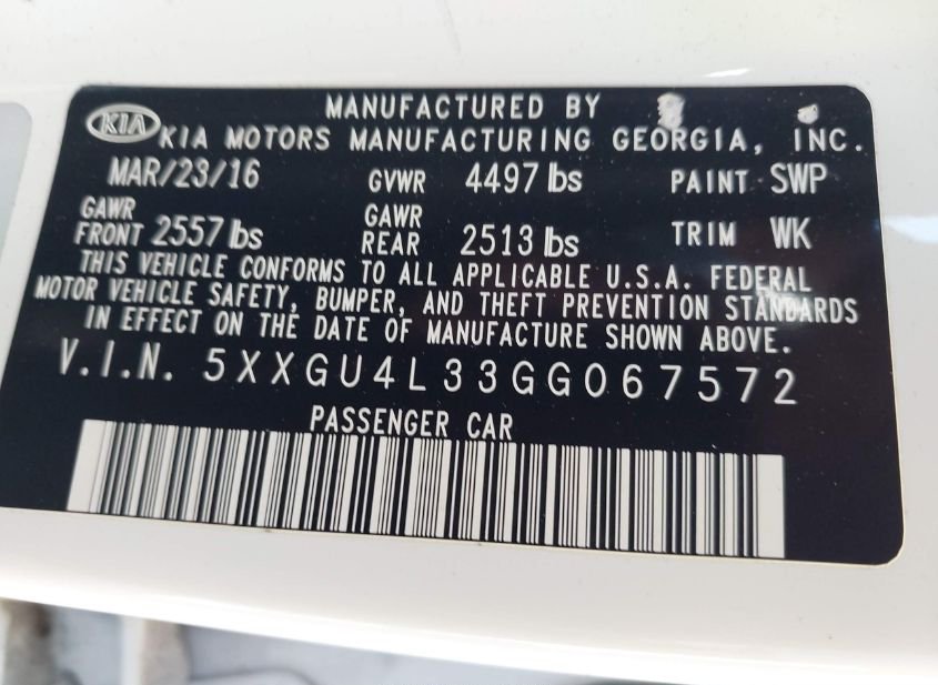 - VIN: 5XXGU4L33GG067572