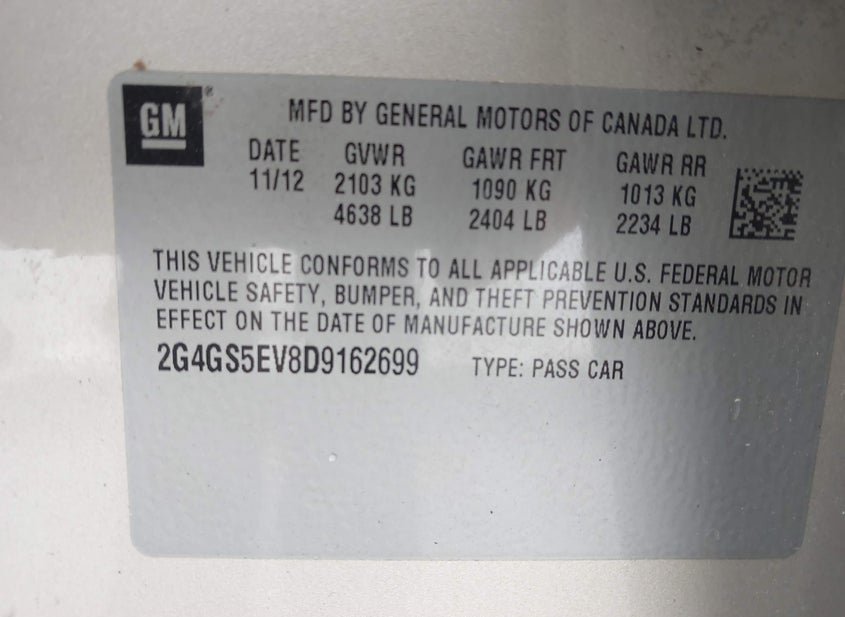 - VIN: 2G4GS5EV8D9162699