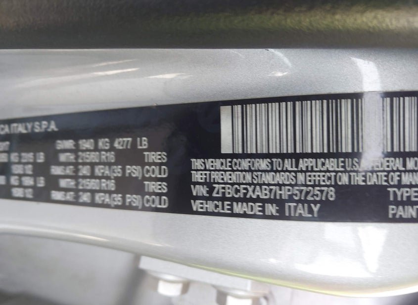 - VIN: ZFBCFXAB7HP572578