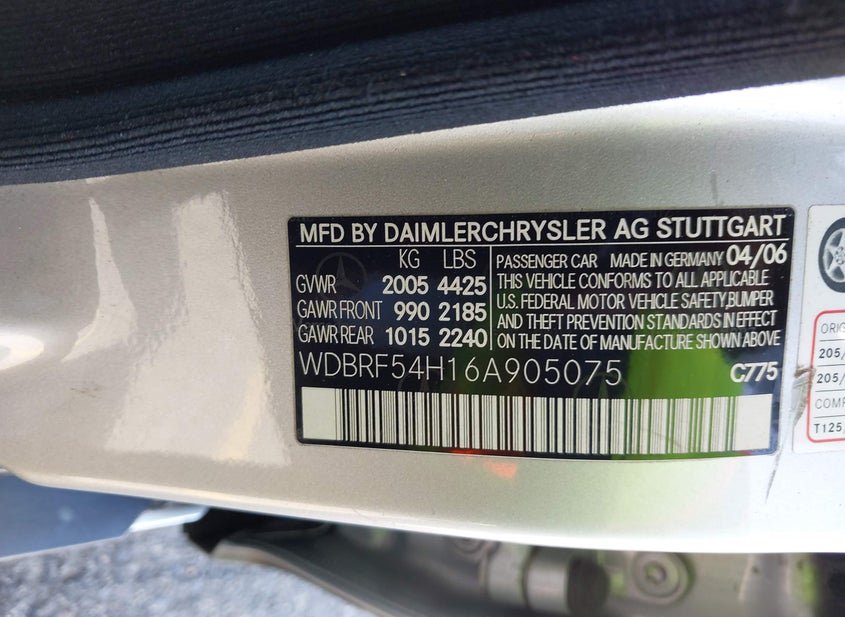 - VIN: WDBRF54H16A905075