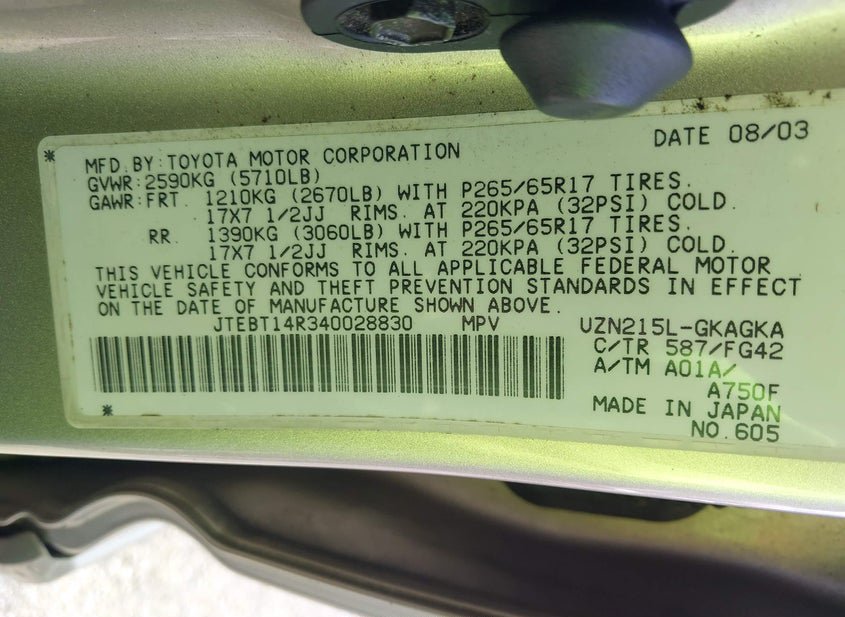 - VIN: JTEBT14R340028830