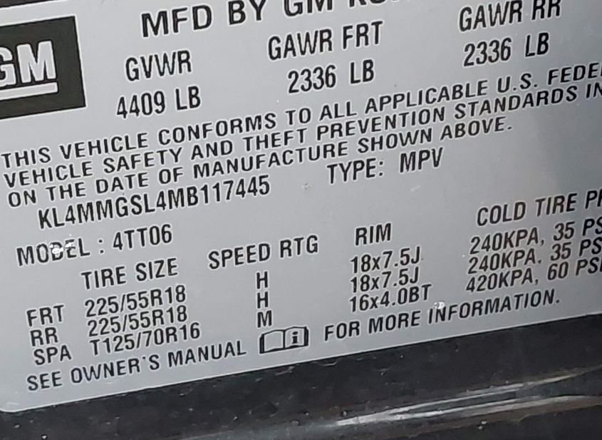 - VIN: KL4MMGSL4MB117445