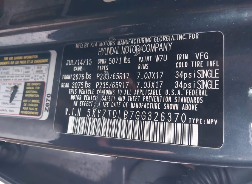 - VIN: 5XYZTDLB7GG326370
