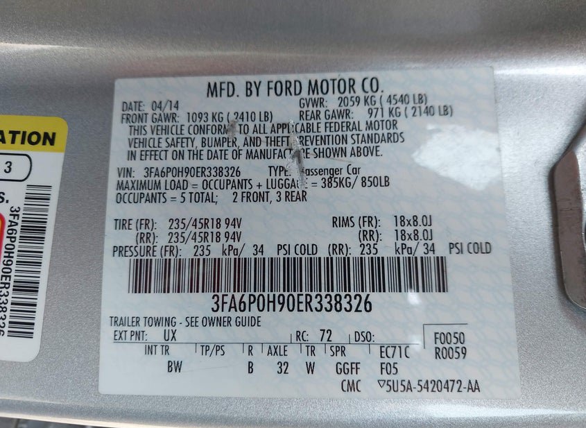 - VIN: 3FA6P0H90ER338326