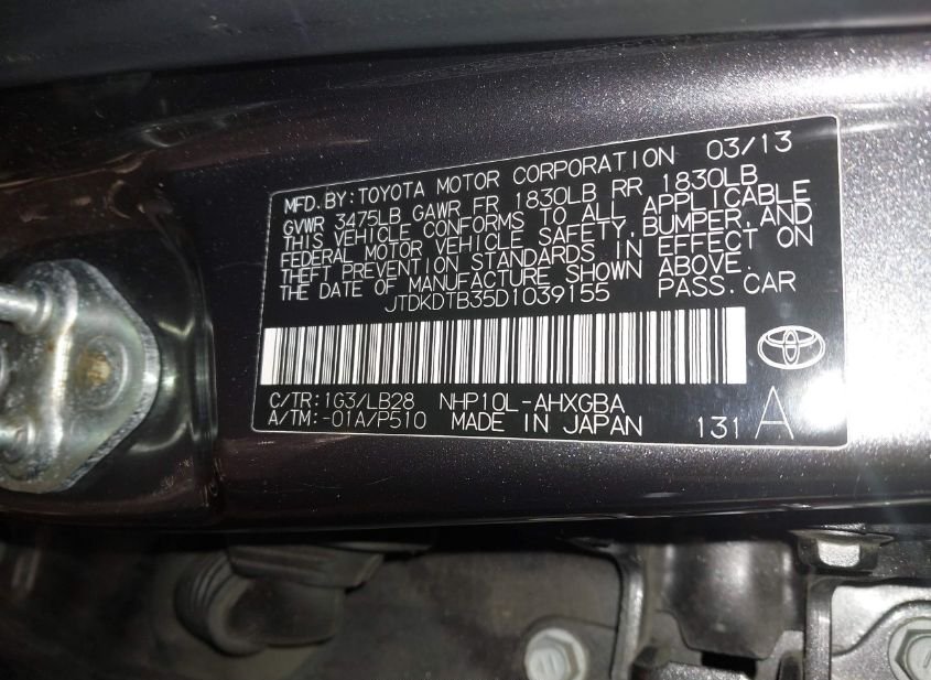 - VIN: JTDKDTB35D1039155