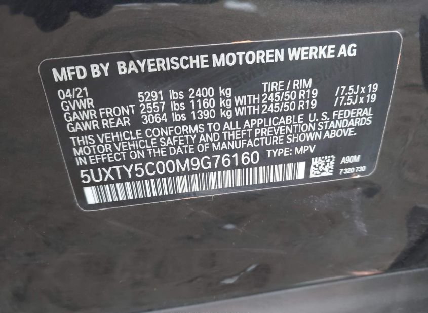 - VIN: 5UXTY5C00M9G76160