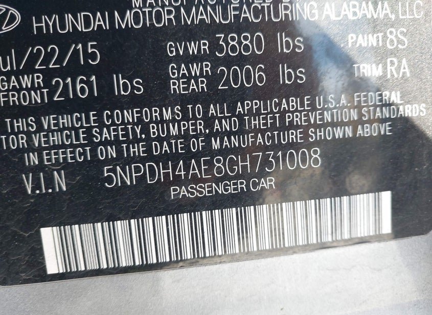 - VIN: 5NPDH4AE8GH731008