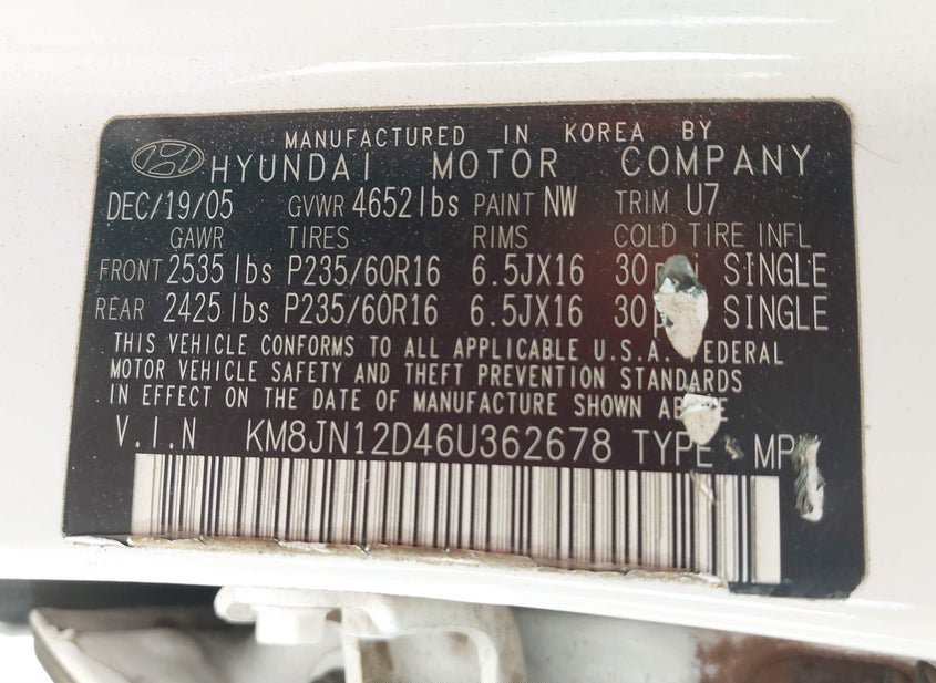- VIN: KM8JN12D46U362678