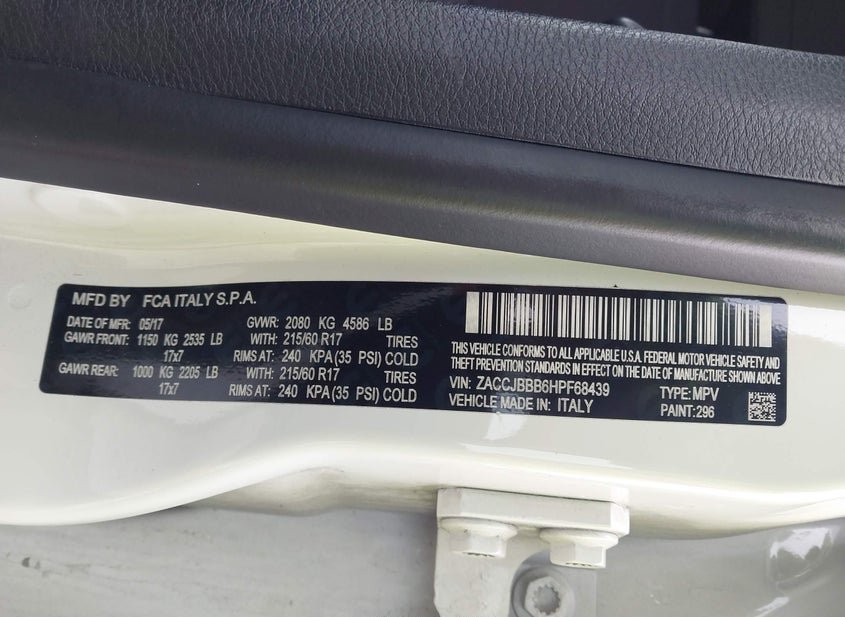 - VIN: ZACCJBBB6HPF68439