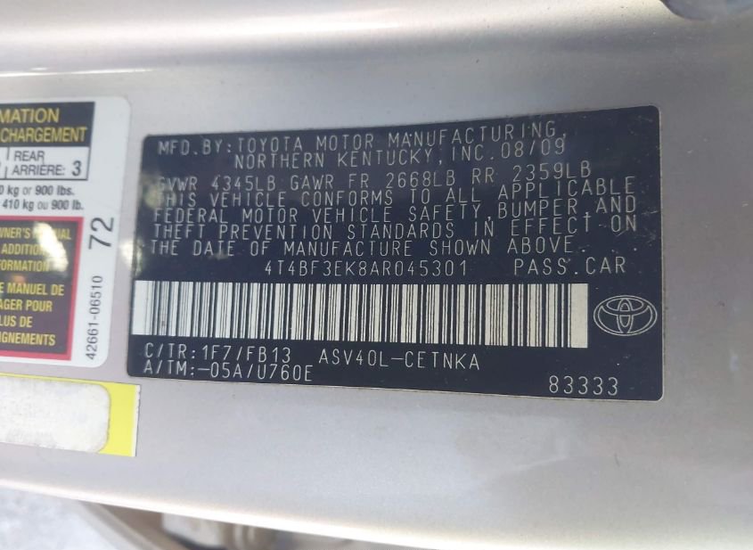 - VIN: 4T4BF3EK8AR045301