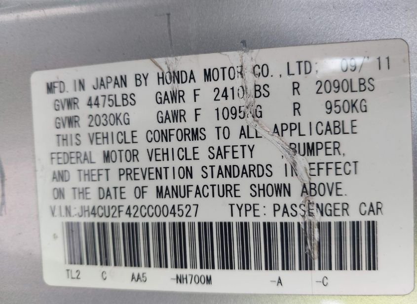 - VIN: JH4CU2F42CC004527
