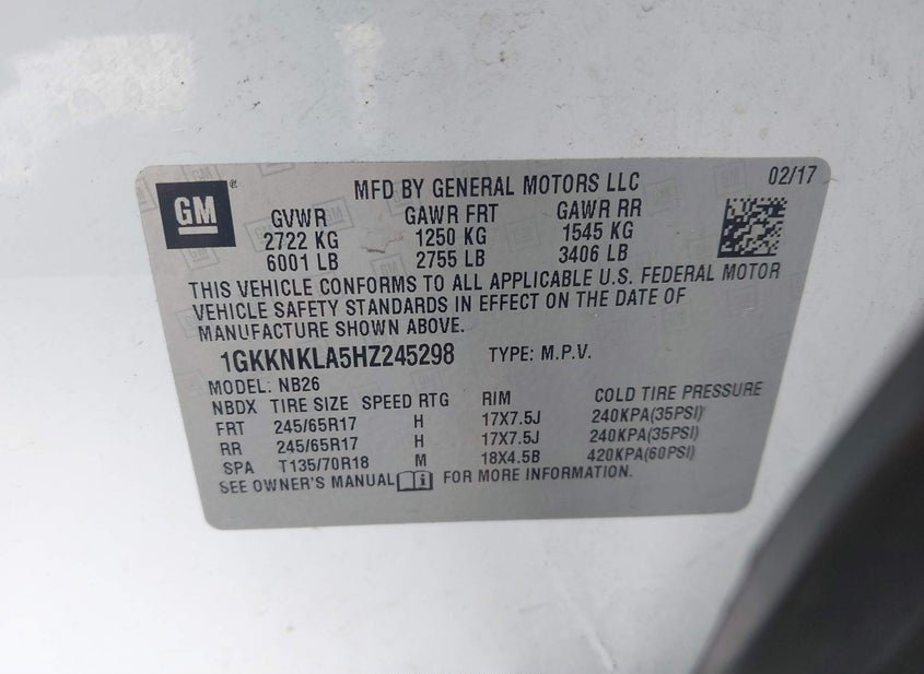 - VIN: 1GKKNKLA5HZ245298