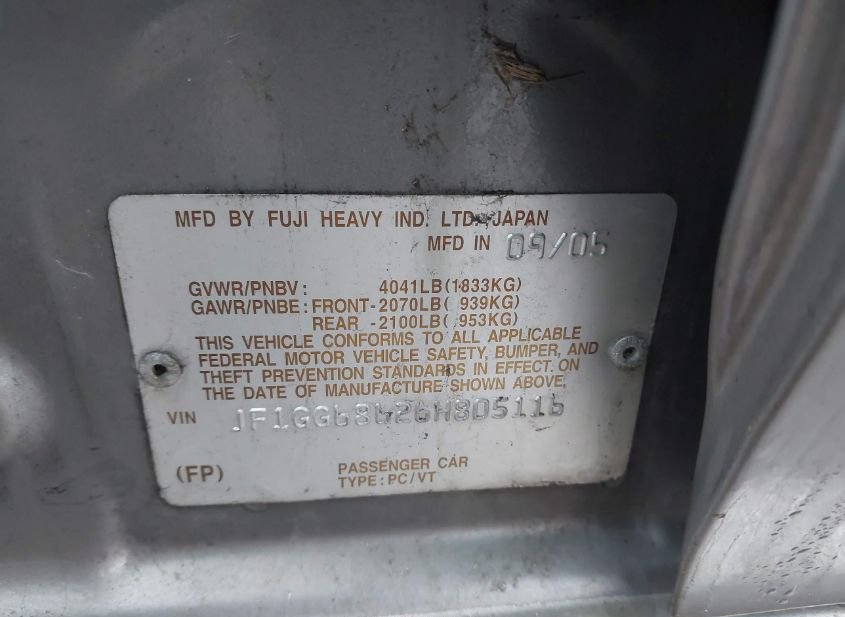 - VIN: JF1GG68626H805116