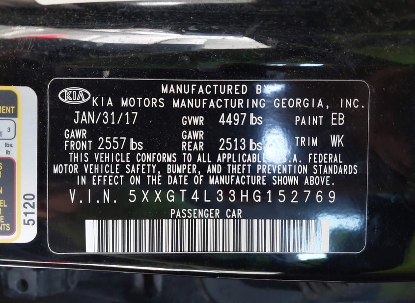- VIN: 5XXGT4L33HG152769