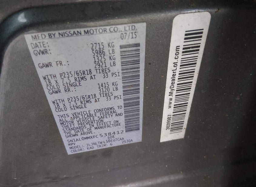 - VIN: 5N1AL0MMXFC538412