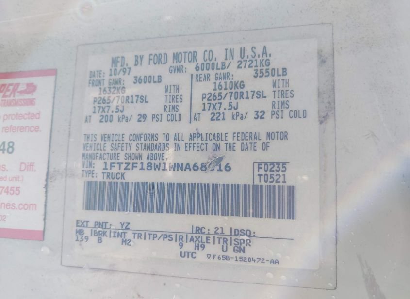 - VIN: 1FTZF18W1WNA68016
