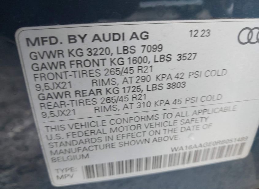 - VIN: WA16AAGE0RB051489