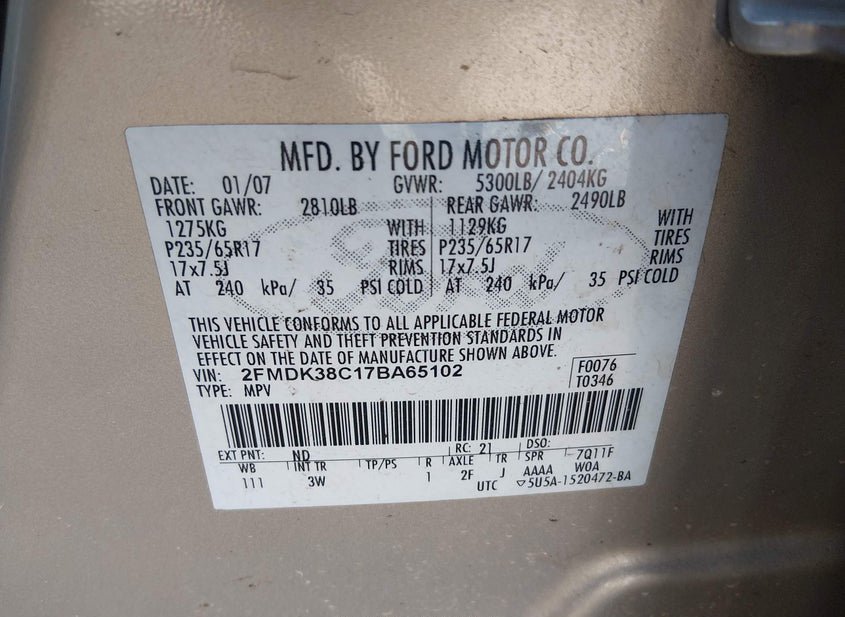 - VIN: 2FMDK38C17BA65102